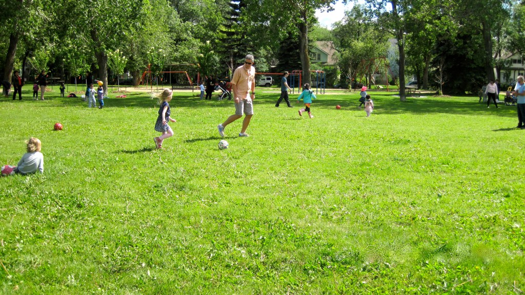 Our rooms have been designed to be fully contained. The educators and children have everything in their room from kitchenettes to cubbies and even washrooms for the children. Inside our centre we have additional play spaces that include a library, an island that overlooks the main floor rooms and an indoor gym (under construction). Our outdoor space provides ample room for all kinds of activities. Along the fence we have apple, cherry, plum and pear trees, with garden vegetables planted in between. A large Elm tree is nestled in the back part of the playground, which provides natural shade in the summer. We are conveniently located in Strathcona and have access to many community resources. Throughout the year we take advantage of the festivals and attractions that come to the area.